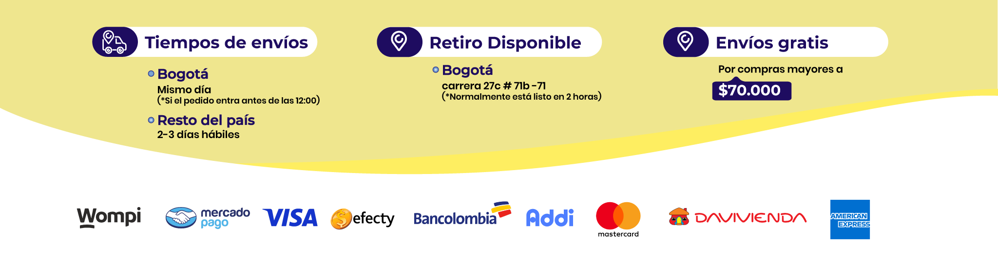 El tiempo de entrega varía según la ubicación. Los envíos en bogotá es el mismo día si pides antes de las 12, en el resto del país entre 1 a 3 días hábiles.
